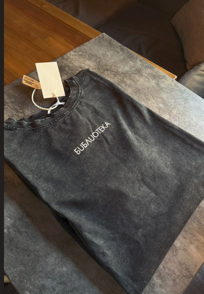 Мы запускаем наш первый мерч — футболка БИБЛИОТЕКА в цвете графит.